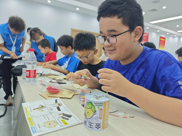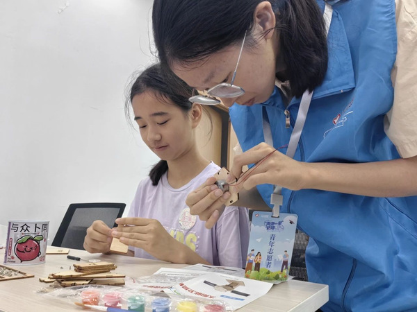 在互动环节,团队成员向现场的青少年推荐了《两弹一星百年探秘》和《钱学森的故事》两本书,希望青少年能从书中汲取力量;提问环节,团队成员蔡镇宇设计了5道题目,加深青少年对“两弹一星”精神的理解;在手工制作环节,宣讲团成员还现场指导小学生制作完成太阳能卫星模型,让大家进一步感受科学魅力。