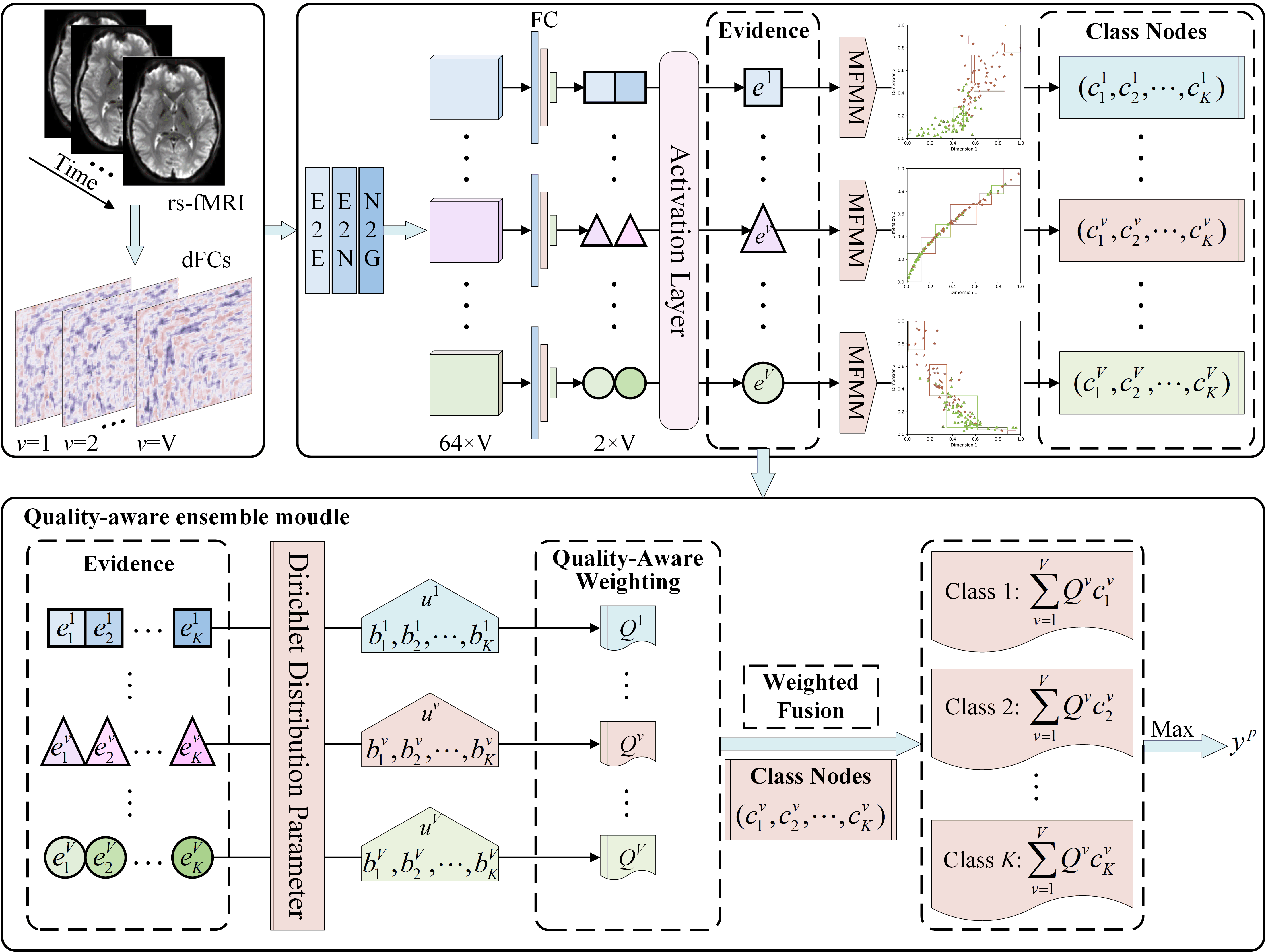 A quality-aware ensemble module is designed to deal with the uncertainty from different views with inconsistent data quality by identifying the trustworthiness of each view. D-S theory is utilized to directly model uncertainty for multiple views, enabling a more effective assessment of the quality of each view.