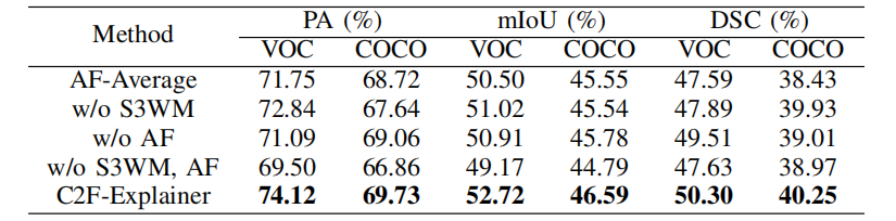 The proposed C2F-Explainer model is quantitatively and qualitatively evaluated on several datasets, including the ImageNet natural image dataset, the COCO 2017 natural image dataset, the VOC 2012 natural image dataset, and the BraTS brain tumor medical image dataset, to validate its performance. The experimental results show that the proposed method can achieve better explanation results than traditional interpretation methods.