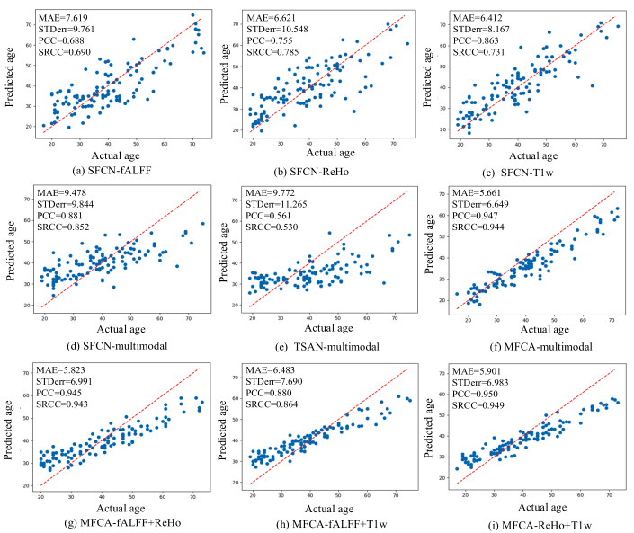 Despite the success of unimodal neuroimaging data in predicting brain age, there are significant limitations. For example, sMRI data provide detailed information about the brain’s gray and white matter structure but lack functional activity information. Conversely, fMRI reflects the brain’s functional activity during different tasks and resting states but lacks structural details. As a result, unimodal data often can only provide specific aspects of information, unable to reflect the multifaceted characteristics of the brain globally, and its generalization ability is also limited.