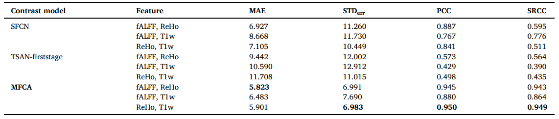 different modalities. The multimodal collaborative convolutional module uses specific convolutional layers to enhance complementary information, effectively mining and utilizing the complementarity of multimodal data to improve brain age prediction accuracy and stability. Additionally, an optimized sorting contrast loss is used to improve the prediction accuracy during training and validation.