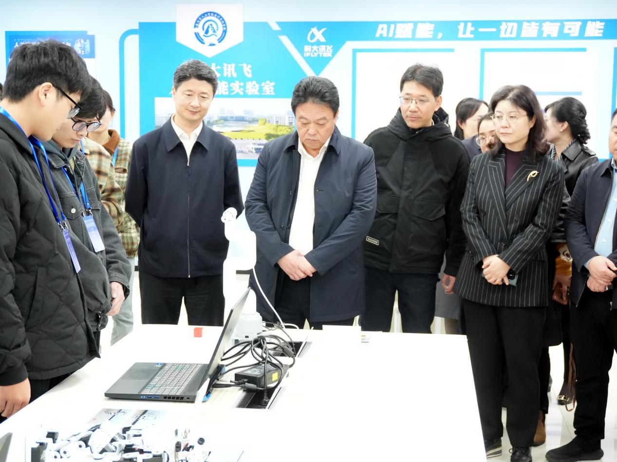 会后,于立忠一行在校党委副书记、校长杨宇民、副校长华亮的陪同下专门来到我院,参观了科大讯飞实验室。yl6809永利官网集团院长丁卫平详细介绍了学院在推进名城名校融合发展战略过程中的举措,以及科大讯飞实验室的建设情况。