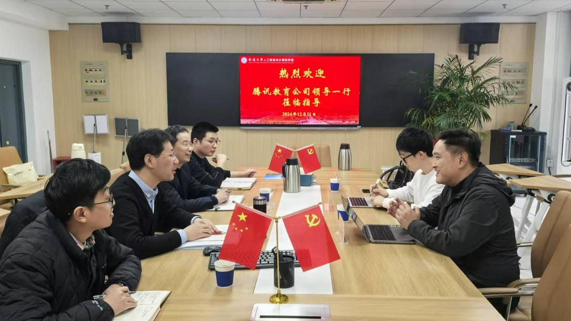 12月11日下午,腾讯教育架构师赵鲁丁一行访问我院。学院院长丁卫平详细介绍了学院的本科生教育、研究生教育、学科建设、国际交流等情况。赵鲁丁介绍了腾讯在高等教育方面的合作经验和现有资源。双方讨论了专业共建、实习实训、竞赛培训等方面的合作。