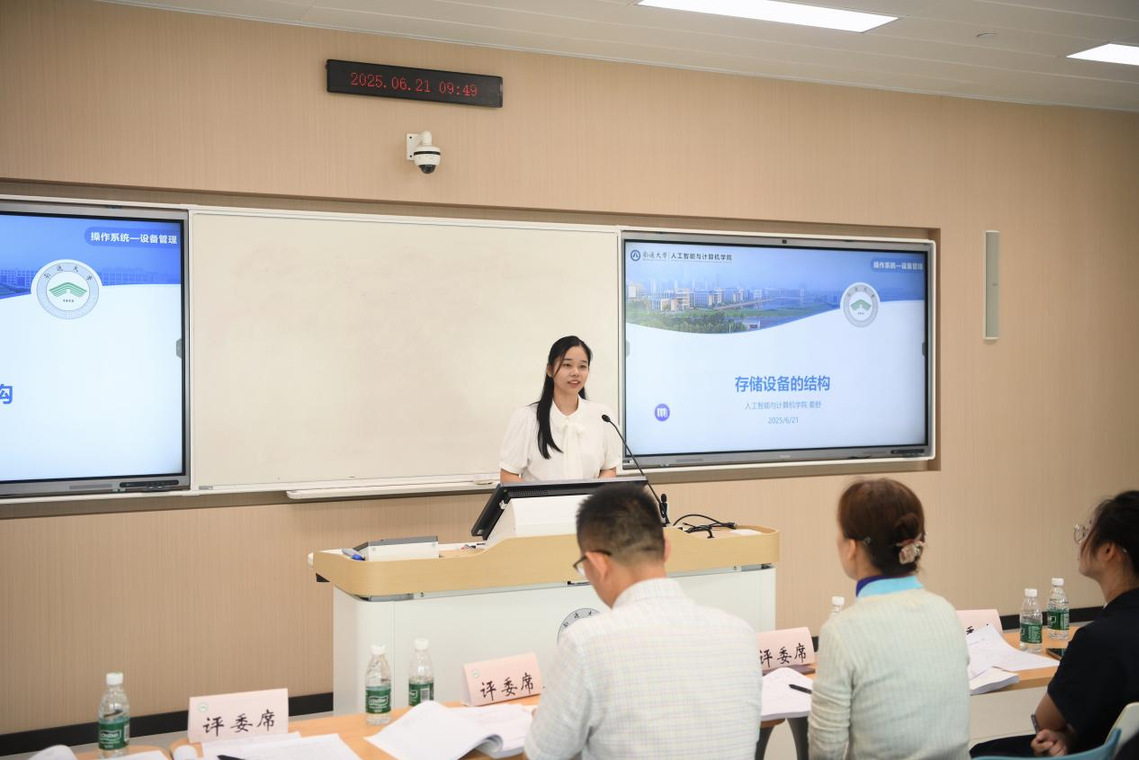 比赛中,姜舒博士以《操作系统》课程中“存储设备结构”为讲授内容,巧妙引入中国传统民居“福建土楼”的形象,帮助学生构建对磁盘空间划分的直观认知。她还以“为土楼居民送外卖”类比磁盘驱动调度策略,生动演绎多种排序优化算法在效率上的差异,巧妙地将抽象晦涩的原理转化为贴近生活的教学情境,有效激发了学生的学习兴趣与思维参与。