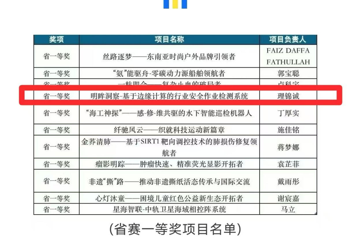 7月10日,江苏大学生创新大赛在yl6809永利集团落下帷幕,yl6809永利官网集团李跃华老师指导的项目《明眸洞察-基于边缘计算的行业安全作业检测系统》终荣获省一等奖。