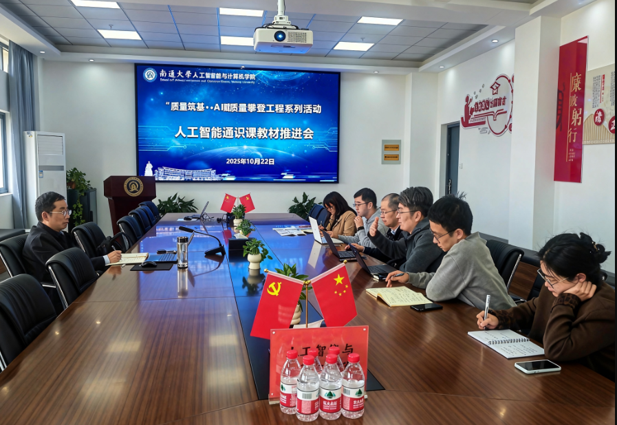 为高标准推进人工智能通识教育课程建设,10月22日,我院组织召开了“人工智能通识课教材编写推进会”。会议由学院副院长王进主持,教材编写组全体成员及课程组教师与会。会议在教材初稿已完成的阶段性成果基础上,重点围绕初稿审议、内容优化及配套课程改革方案进行了深入研讨。